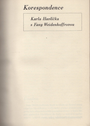 - název: Korespondence Karla Havlíčka s Fany Weidenhoffrovou