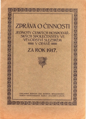 - název: Zpráva o činnosti jednoty hosp.společenstev ve vévodství slezském v Opavě za rok 1917
